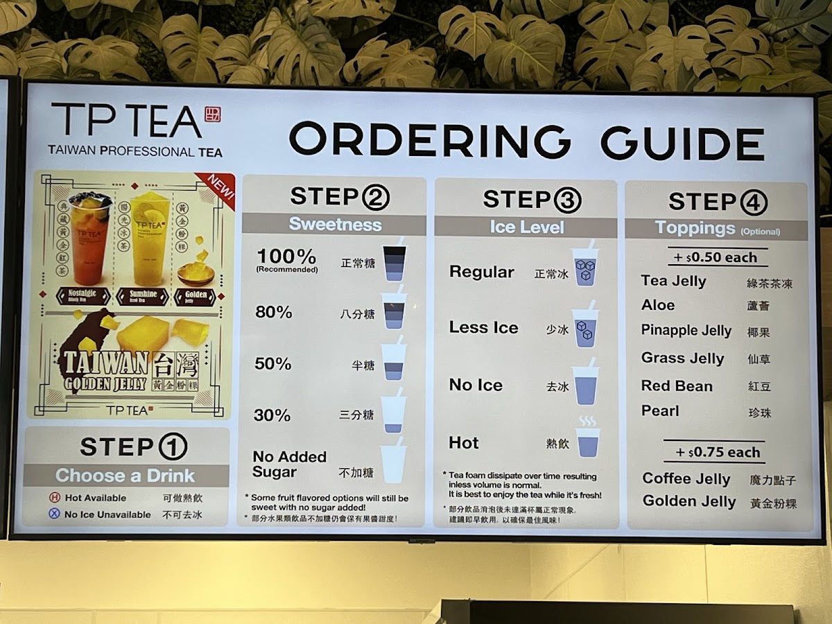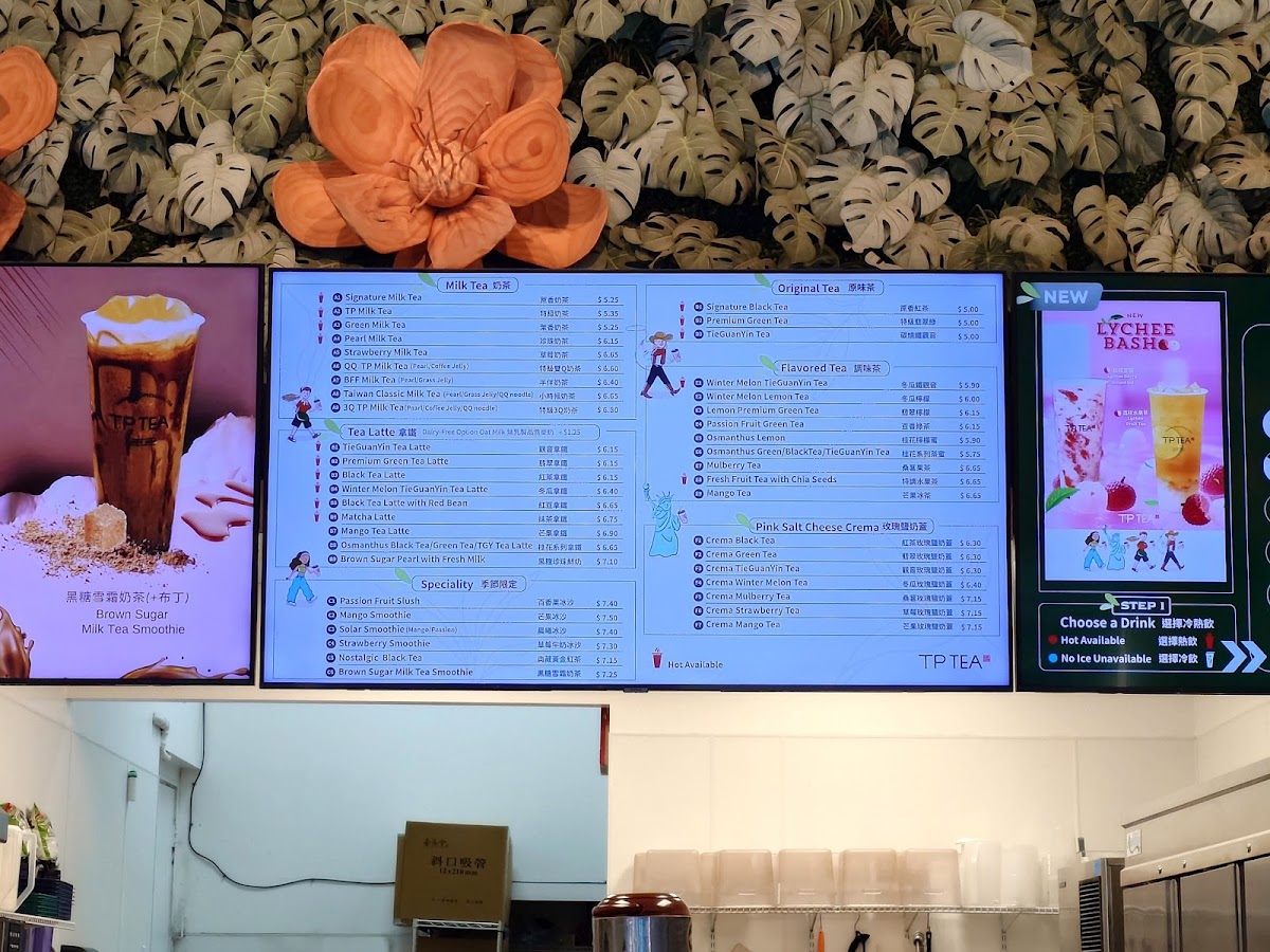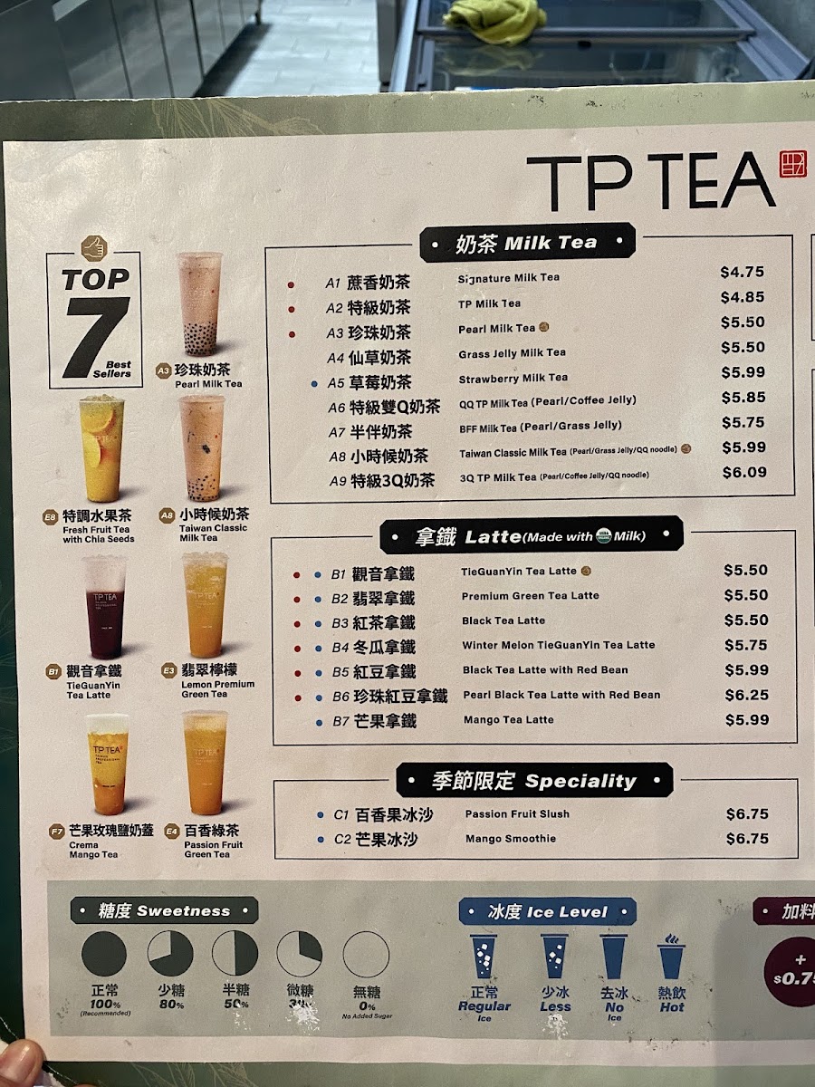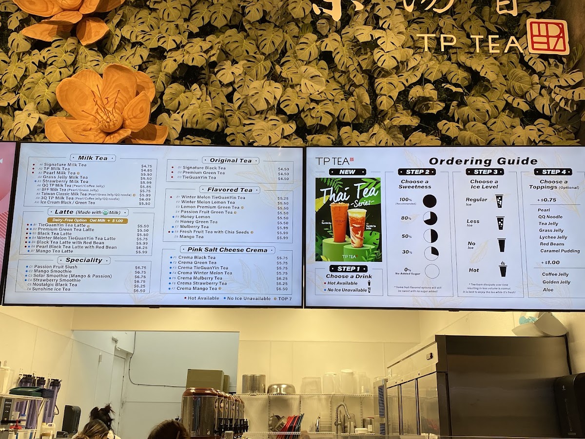 The menu at Tp Tea in Seattle offers an impressive variety of teas, from refreshing fruit-based blends to creamy milk teas and unique specialties. For flavored tea enthusiasts, options like Wintermelon TGY Tea ($4.50), Mulberry Tea ($4.00), and Passion Fruit Tea ($4.50) bring a delightful range of flavors, while the Osmanthus Lemon Glow with Golden Jelly ($5.00) stands out with its sweet and fragrant touch. Milk tea lovers will enjoy the rich, indulgent offerings such as MT 蔗香奶茶 ($4.50), 3Q TP MT ($5.00), and Taiwan Classic MT ($4.00), each with their own unique sweetness and texture. For those seeking something a bit more indulgent, the Crema series includes creamy options like BT Crema ($4.50) and Wintermelon Tea Crema ($5.00), providing a luscious, velvety experience. The Signature Black Tea ($3.50) and TieGuanYin Tea ($4.00) are perfect for those who prefer classic, bold flavors, while the Nostalgic Black Tea ($5.00) evokes memories of traditional tea-drinking. Additionally, the Tea Latte section features comforting choices like the TGY Tea Latte ($5.00) and Matcha Latte ($5.00), which provide smooth, frothy options for a more indulgent tea experience. Whether you're looking for something light and fruity or rich and creamy, Tp Tea offers a diverse and flavorful selection for every tea lover.